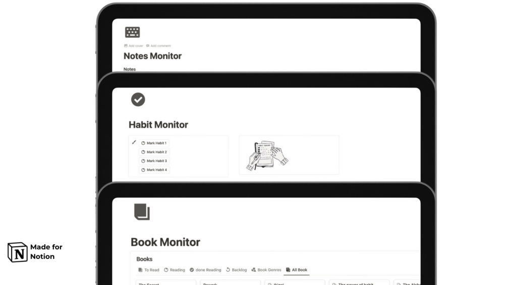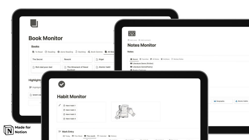 Unlock your full potential with the Beginner Pack—a collection of three essential Notion templates designed to streamline your daily life. Whether you're tracking habits, organizing your reading list, or managing notes, this pack is the perfect starter kit for boosting productivity.